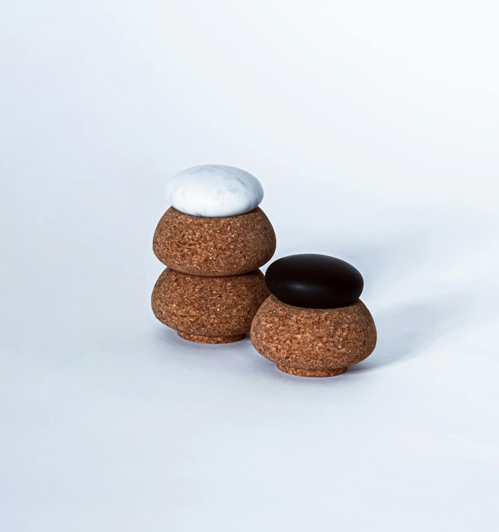 La elección del corcho como material para el recipiente se hizo considerando sus propiedades de absorción de humedad. Su forma está inspirada vagamente en los antiguos recipientes de evaporación briquetage utilizados para la producción de sal y en los silos subterráneos, dando como resultado un lenguaje modular que facilita el apilamiento y almacenamiento de los recipientes, así como su uso para diferentes contenidos.